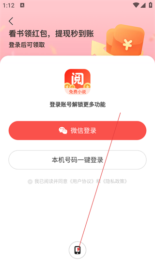 3、在登录选择界面,点击【手机号登录】入口,进入手机号登录流程。