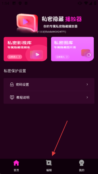 1、在私密隐藏播放器首页,点击底部【编辑】,进入视频处理界面。