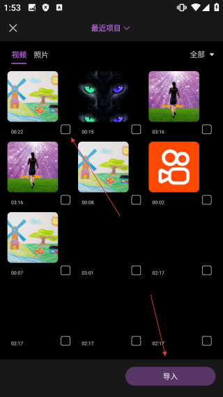 3、在视频选择界面【选择要分割的视频】并点击【导入】,进入视频分割界面。