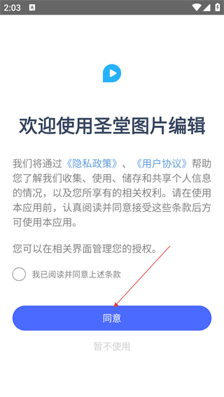 1、在软件启动时,勾选“我已阅读并同意上述条款”后点击【同意】,进入首页。