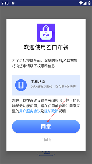 1、在【欢迎使用乙口布袋】弹窗中,点击【同意】可继续使用软件。