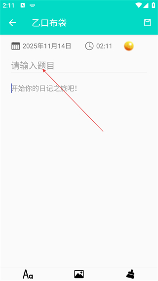 3、在日记编辑页面中,输入题目,添加内容后即可点击保存。