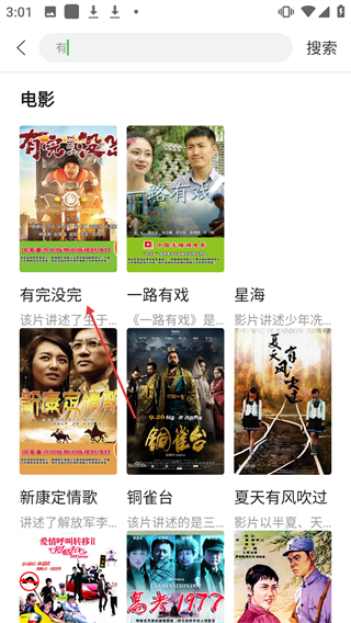 3、搜索“有”后,可点击【有完没完】等影片封面进入查看详情。