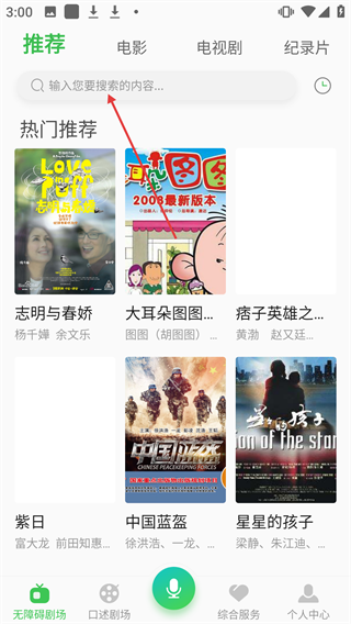 1、在该应用中,可点击【输入您要搜索的内容…】的搜索栏,输入想要查找的影视内容。