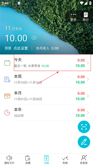 1、在底部导航栏点击【记账】选项,进入记账页面。