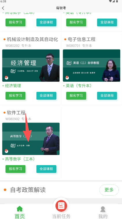 3、当前任务板块能够直观追踪学习进度,提醒待学课程与即将到来的考试安排。