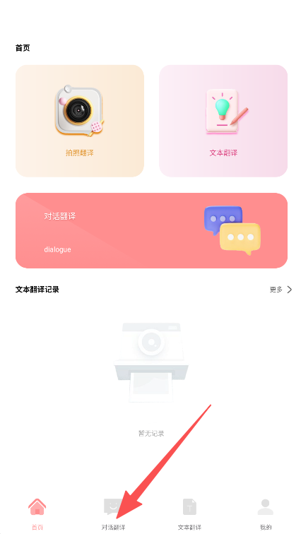 1、在首页点击底部导航栏的“对话翻译”。