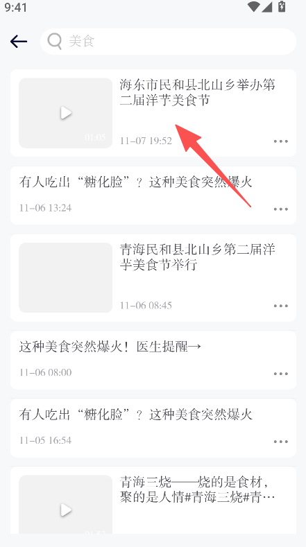 1、使用搜索功能,输入关键词(如美食),查找本地资讯。