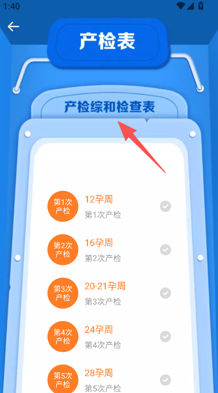 3、产检表设计直观,按孕周列出产检时间,清晰明了,方便用户规划产检安排。
