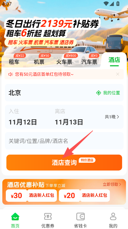 3、实现优惠发放功能,推出各类补贴券、红包,让用户在预订时享受价格优惠,提升出行与住宿体验。