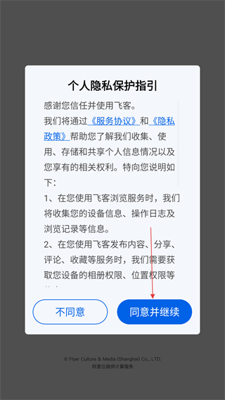 1、在【个人隐私保护指引】弹窗中,点击【同意并继续】。