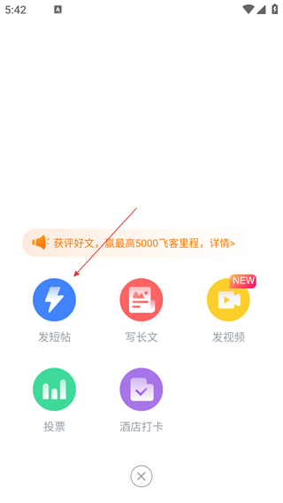 3、在内容发布选择页面,点击【发短帖】选项,进入快速发帖界面。