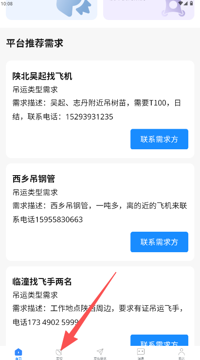 1、需求广场直接呈现任务详情,包括项目地点、所需机型、结算方式等关键信息。