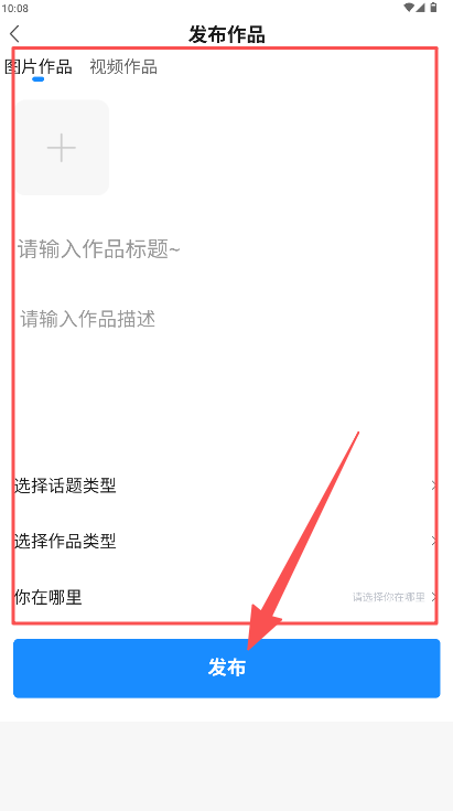 3、在发布作品页填写标题描述后,点击“发布”提交。