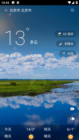 1、在天气界面,点击左上角【+】,进入城市管理界面。