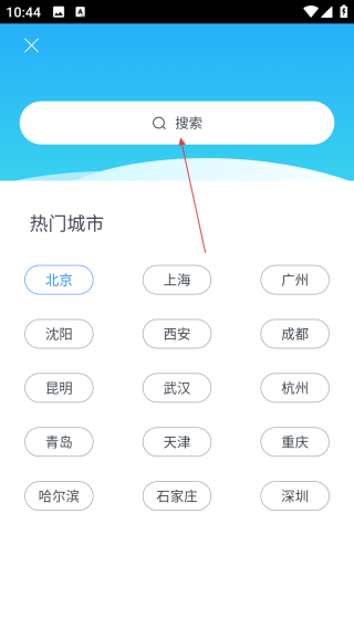 3、在城市搜索界面的搜索框中,输入【想要查看天气的城市】。