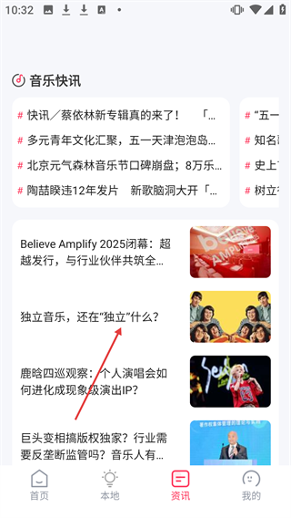 2、在音乐应用【资讯】页面,可浏览【音乐快讯】等各类音乐相关资讯。