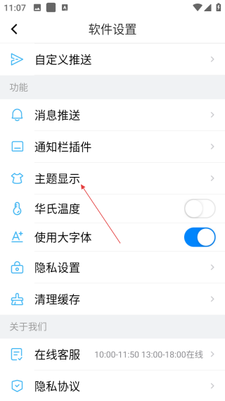3、在软件设置界面,点击【主题显示】,进入主题显示设置界面。