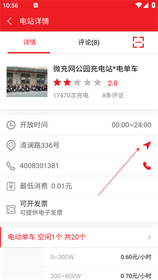 3、在电站详情页面,点击导航箭头图标,进入导航地图页面。