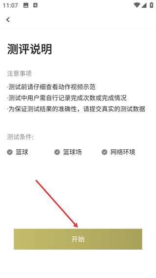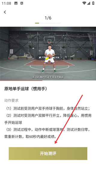 1、点击【篮球能力测评-参与测试】按钮,进入篮球能力测评界面。