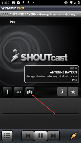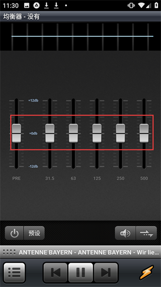 3、在电台播放页面,点击均衡器图标可进入均衡器调节界面。