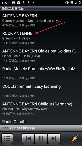 2、在【最受欢迎的电台】列表中,可点击如【ROCKANTENNE】等电台进入播放页面。