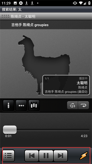 4、进入歌曲播放界面后,可通过底部的播放控制按钮进行播放、暂停、切换曲目等操作。
