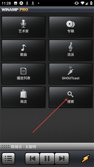 1、在WinampPro主界面,点击【搜索】按钮进入搜索页面。