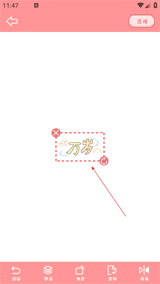 4、进入手帐编辑页面后,可对贴纸进行位置、角度等调整,完成后点击【完成】按钮。