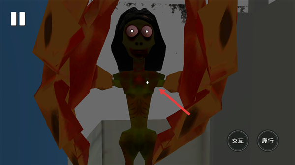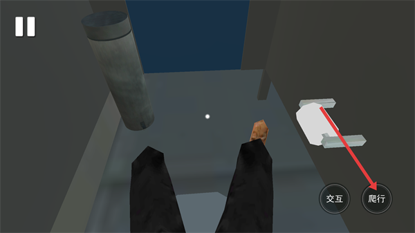 2、在游戏场景中,点击【爬行】按钮,切换为爬行状态,实现狭小空间移动。