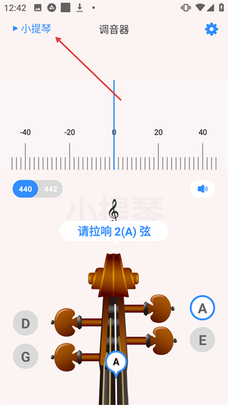 1、在小提琴调音器界面,点击【小提琴】可进入乐器切换页面。
