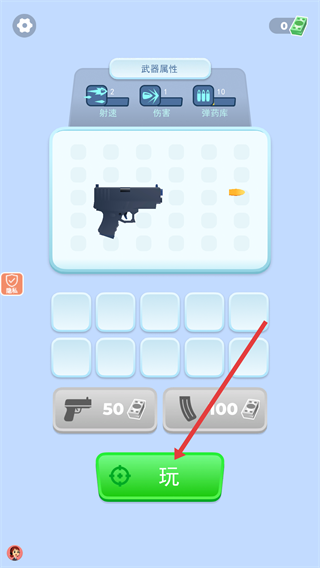 1、点击绿色【玩】按钮,进入游戏,开始射击关卡挑战。