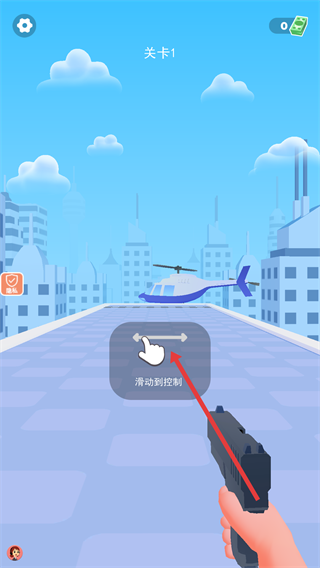 2、在关卡1中,按照提示【滑动到控制】,通过滑动操作控制射击方向。