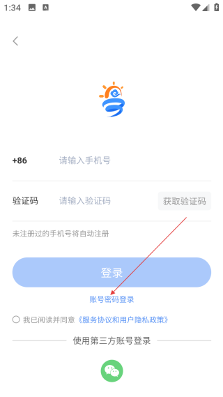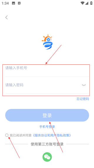 4、在账号密码登录界面【输入手机号和密码,勾选协议】后点击【登录】,即可完成登录操作。