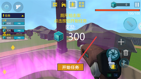 3、在【厕所枪击案】任务提示下,点击【开始任务】,领取300奖励,开启射击挑战。