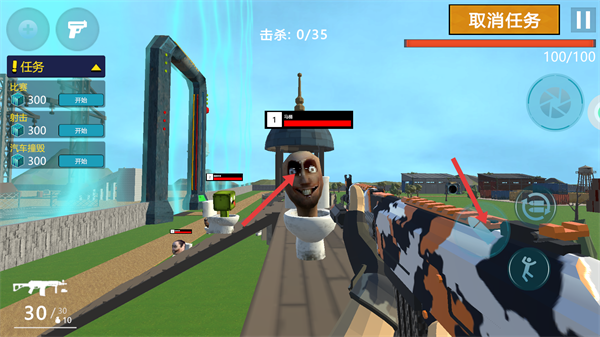 4、进入任务后,控制射击,瞄准马桶类敌人,完成【击杀35/35】的任务目标,推进关卡进程。