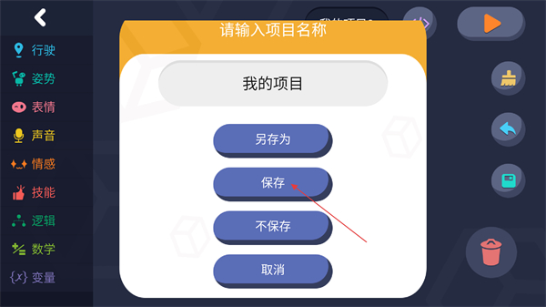 4、创作完成后,可对项目进行保存操作,选择【保存】按钮完成项目保存。