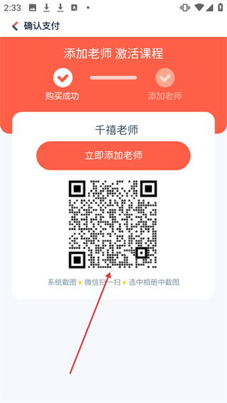 4、领取成功后,可通过扫描二维码添加千禧老师,激活课程。