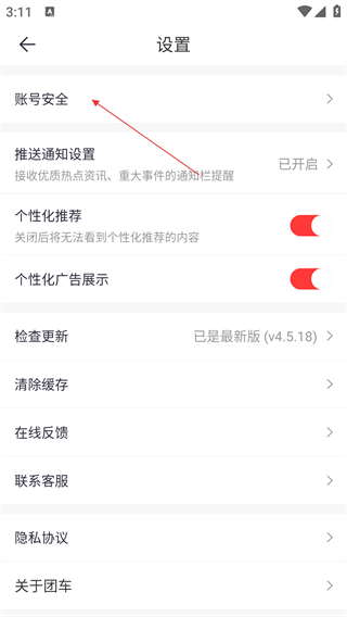 2、在设置页面,点击【账号安全】选项,进入账户与安全页面。