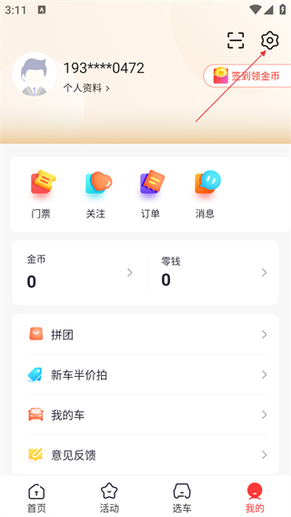 1、在【我的】页面,点击右上角设置图标,进入设置页面。
