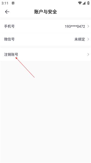 3、在账户与安全页面,选择【注销账号】选项,弹出提示框。