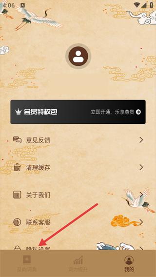 2、在【我的】页面,找到【隐私设置】选项并点击,进入隐私设置界面。