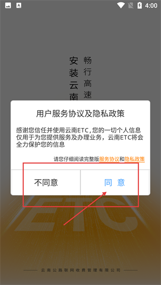 1、打开软件后,会弹出【用户服务协议及隐私政策】提示框,需仔细阅读后点击【同意】,才能继续使用软件功能。
