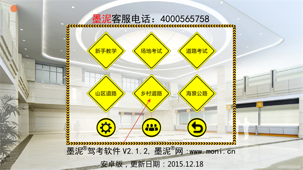 1、在墨泥驾考软件主界面,点击【乡村道路】进入乡村道路驾驶模拟场景。