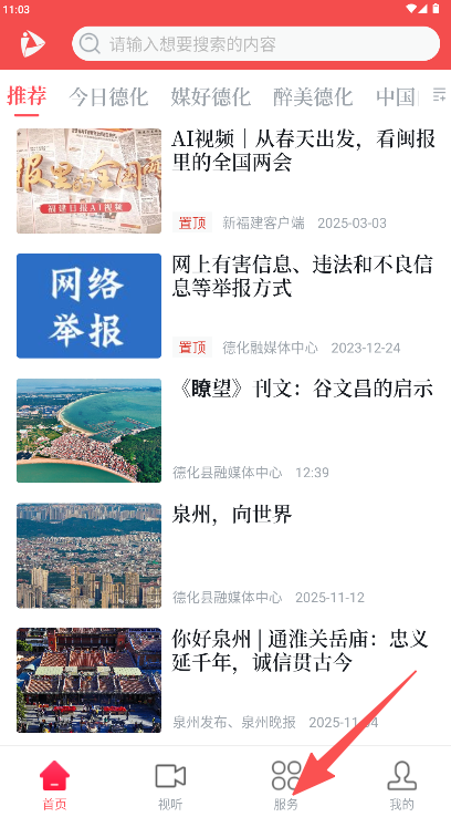 2、内容定位专注于德化本地,集新闻、政务、文化、服务于一体,具有鲜明的地域属性。
