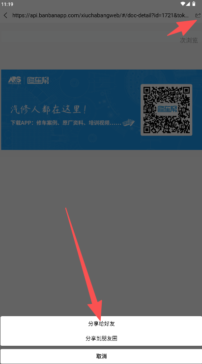 3、进入详情页点击右上角箭头弹出界面分享给好友。