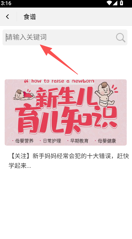 3、在食谱搜索栏,输入关键词可查找对应辅食食谱。