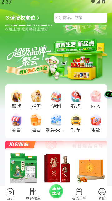 1、打开数智无忧生活软件进入首页,找到 “本地生活” 板块,点击即可浏览附近商家、便民服务及本地专属优惠信息。