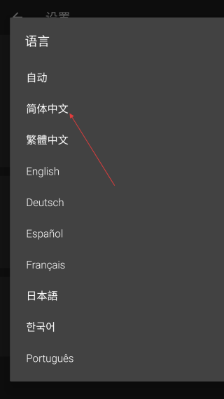 4、在语言选择界面,选择【简体中文】,即可将应用语言设置为简体中文。
