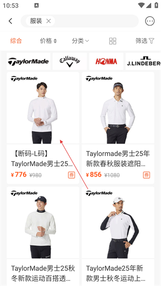 2、进入商城后,选择【服装】分类,可查看高尔夫服装系列。